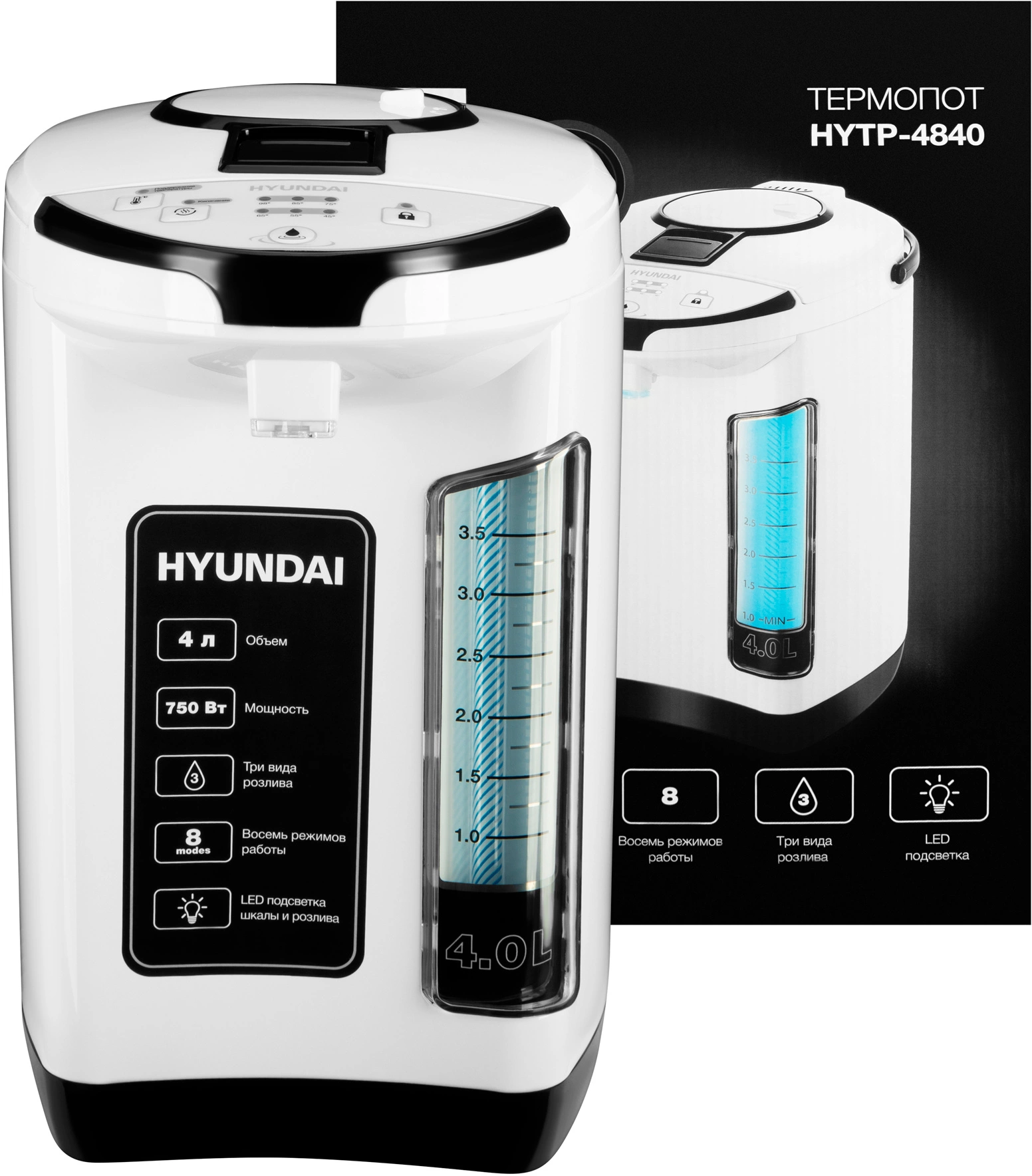 Термопот Hyundai HYTP-4840 4л. 750Вт белый/черный