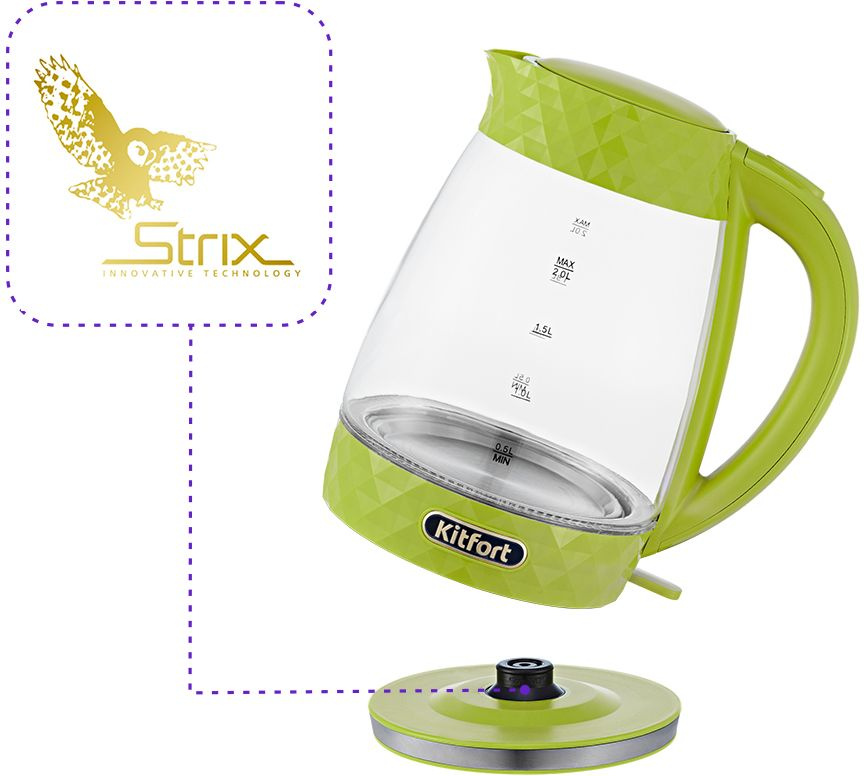 Мощный и вместительный чайник Kitfort КТ-6123 отлично подойдёт для тёплых встреч с семьёй и друзьями. За один раз в чайнике можно вскипятить до 2л воды. Этого хватит, чтобы приготовить горячие напитки на большую семью.