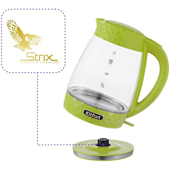 Чайник Kitfort КТ-6123-2 2л. 2200Вт салатовый корпус: стекло/металл/пластик
