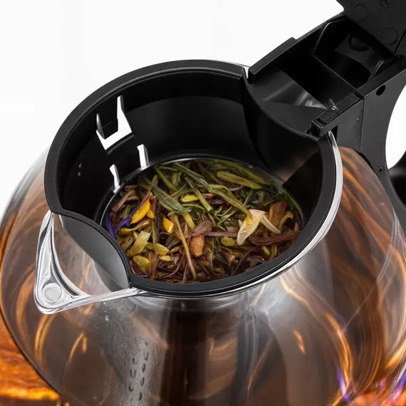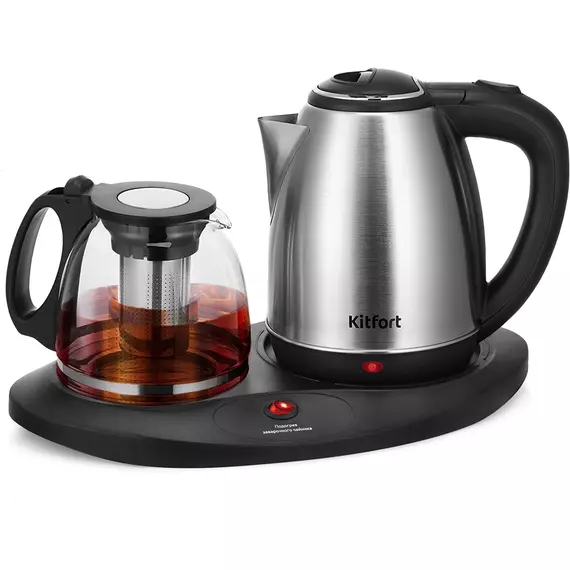 Чайный набор КТ-6638 состоит из чайника ёмкостью 1,8 л, заварочного чайника с фильтром для заварки ёмкостью 1,2 л и базы. Набор поможет вам не только вскипятить воду, но и заварить чай или кофе, а также сохранять готовый напиток тёплым.