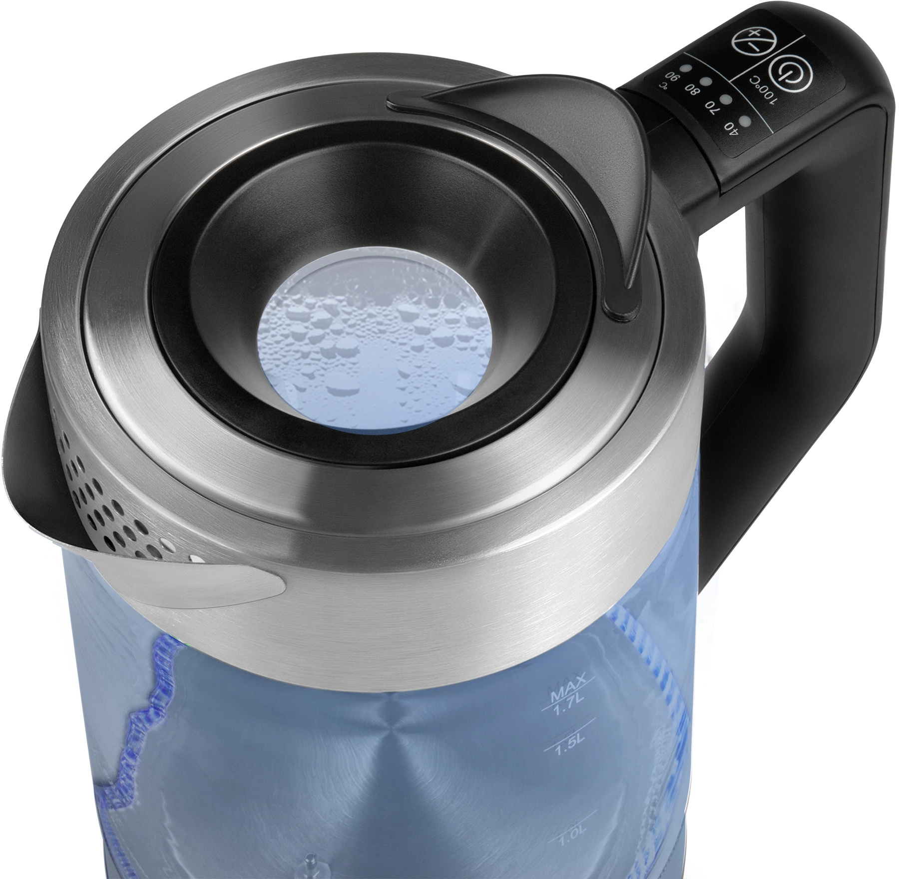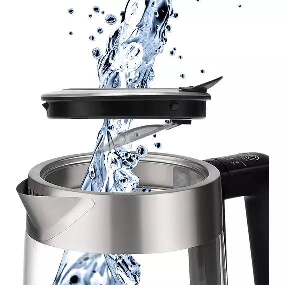 | Особенности | Безупречно спроектированная съемная крышка для максимально удобной очистки чайника. 5 предустановленных температурных режимов - 50, 70, 80, 90, 100?. Сенсорная панель управления. Корпус из высококачественного термостойкого стекла. |