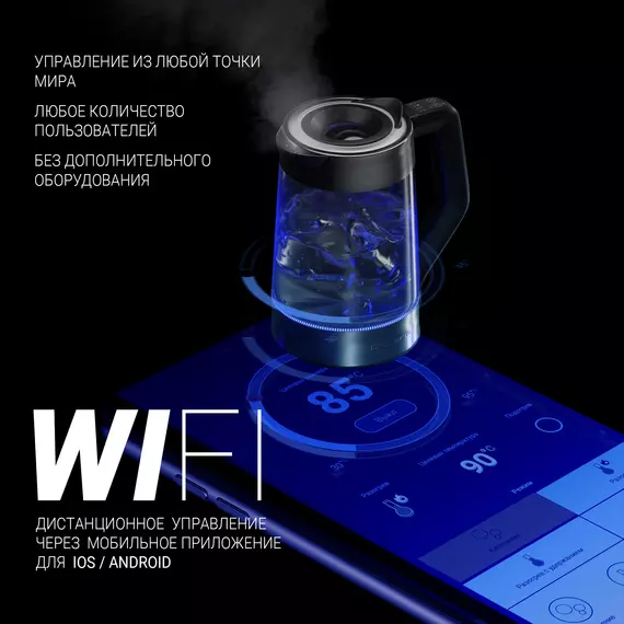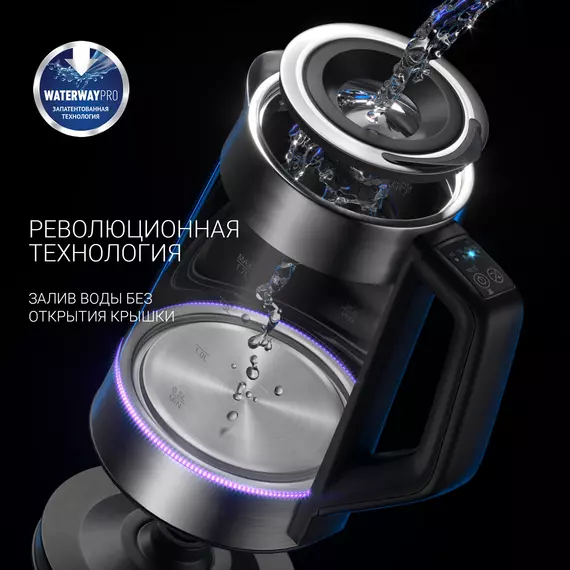 WI-FI управление без дополнительного оборудования. Из любой точки мира. Любое количество пользователей. Новая запатентованная технология ""WATERWAY PRO"" для удобного залива воды в чайник без открытия крышки.