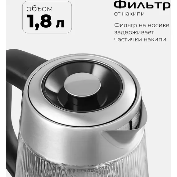 Чайник электрический Red Solution G121 1.8л. 2200Вт черный/серебристый корпус: стекло/металл/пластик