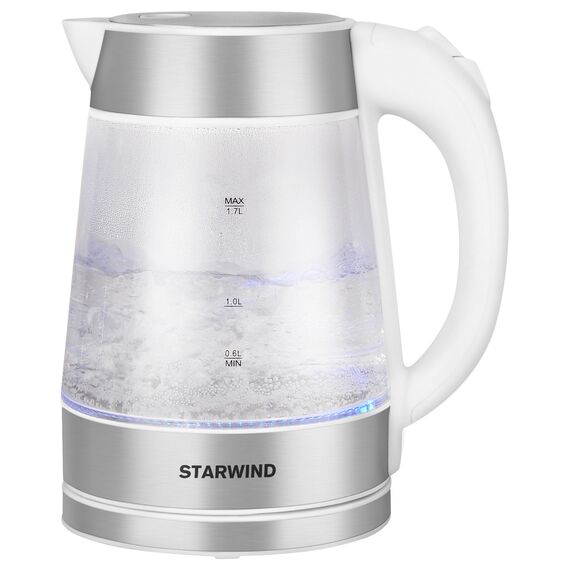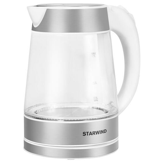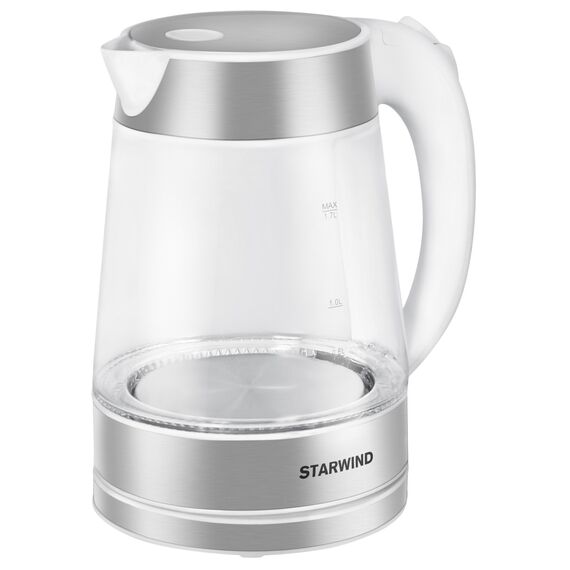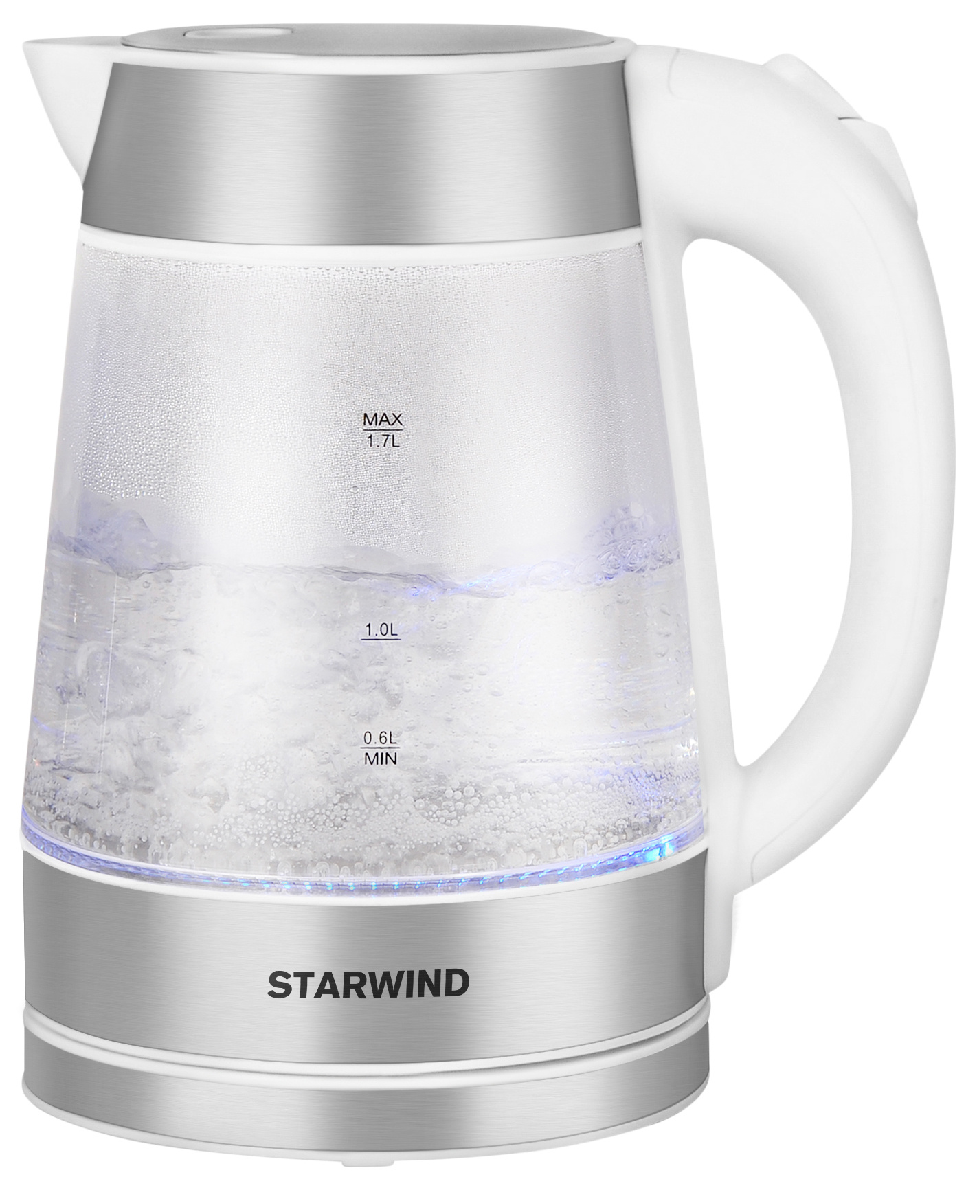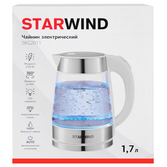Чайник STARWIND SKG2011 1.7л. 2200Вт белый/серебристый корпус: стекло/металл/пластик