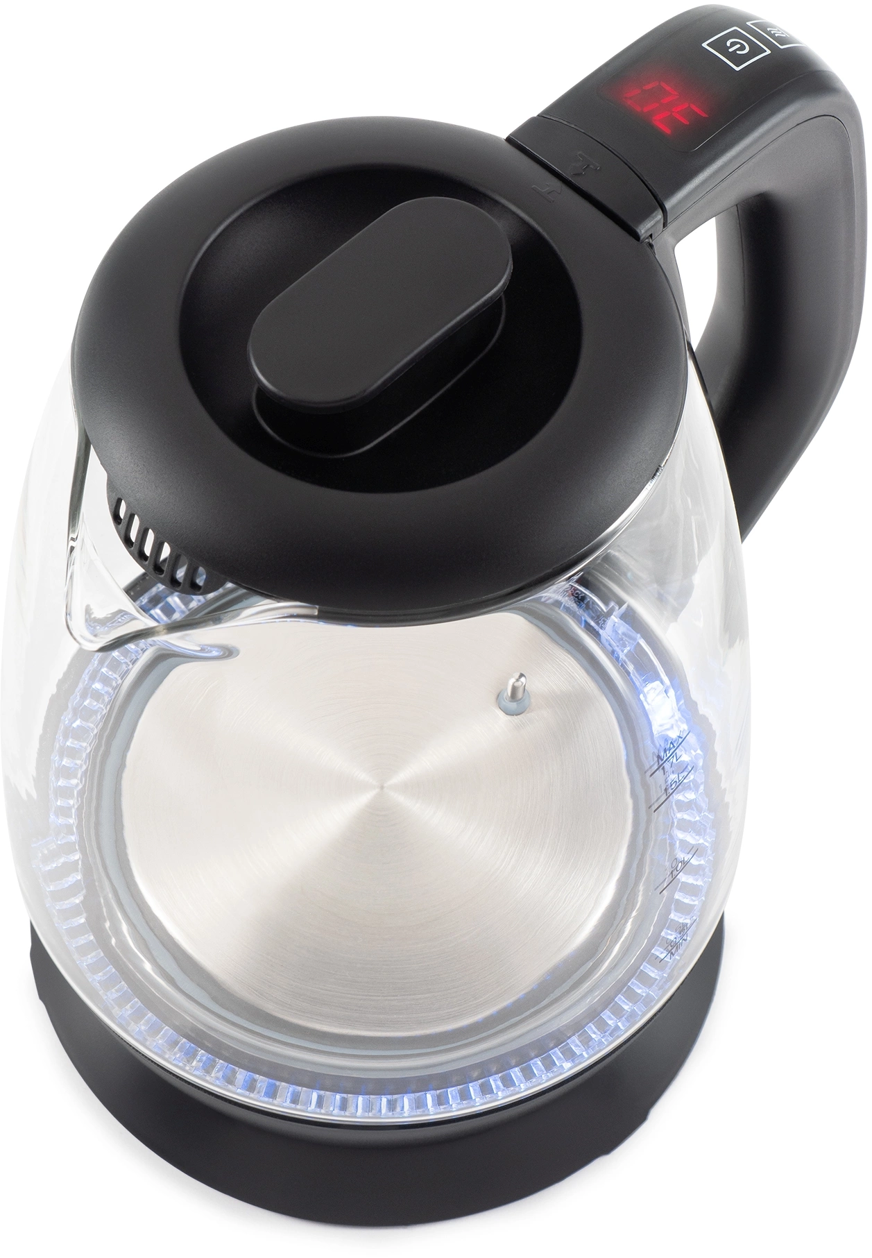 Стильный стеклянный чайник с оптимальным набором технических характеристик, регулировкой температуры и съемной крышкой.