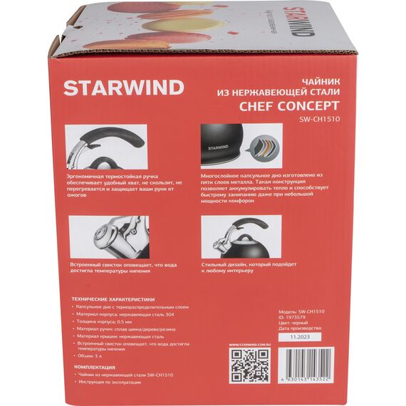 Чайник металлический STARWIND SW-CH1510 Chef Concept 3л. черный