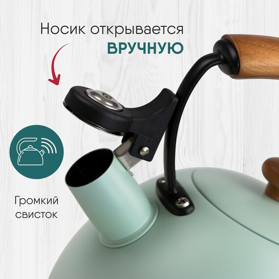 Чайник WILLMARK WTK-3694SS зеленый, 2.8 л, со свистком