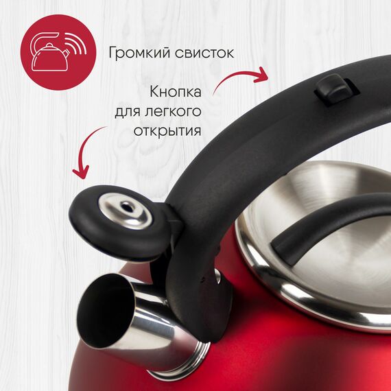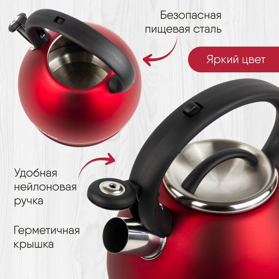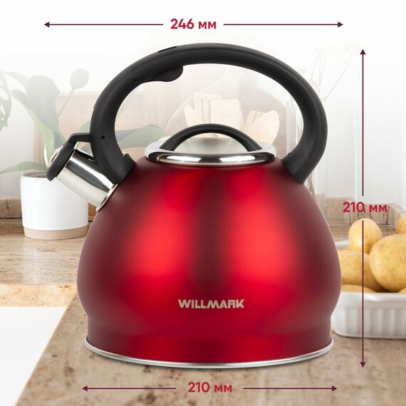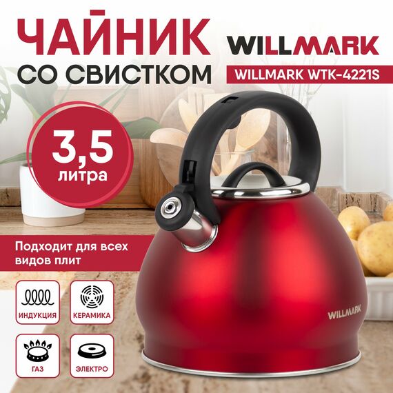 Чайник WILLMARK WTK-4221SS красный, 3.5л, со свистком