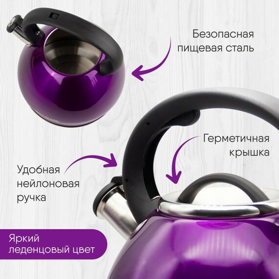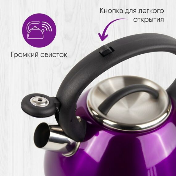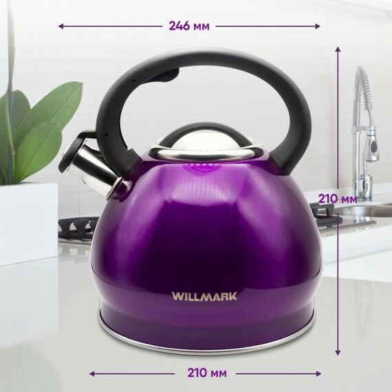Чайник WILLMARK WTK-4221SS фиолетовый, 3.5л, со свистком