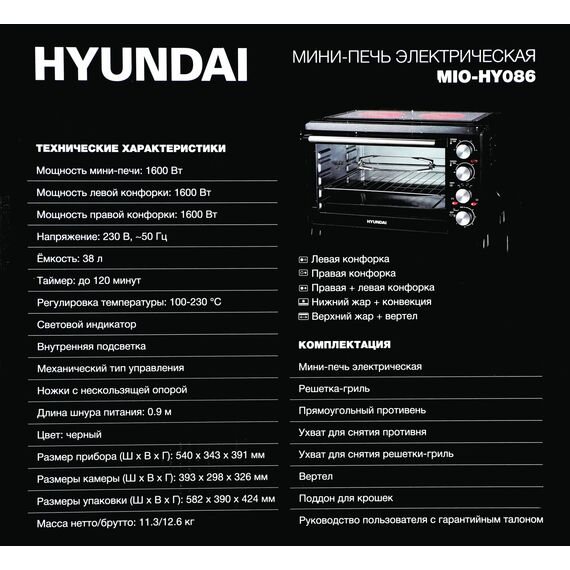 Мини-печь Hyundai MIO-HY086 38л. 1600Вт черный