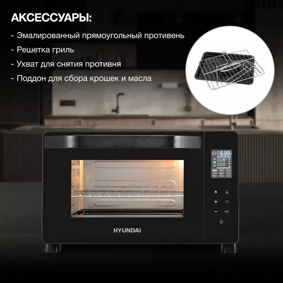 Мини-печь Hyundai MIO-HY088 23л. 1500Вт черный