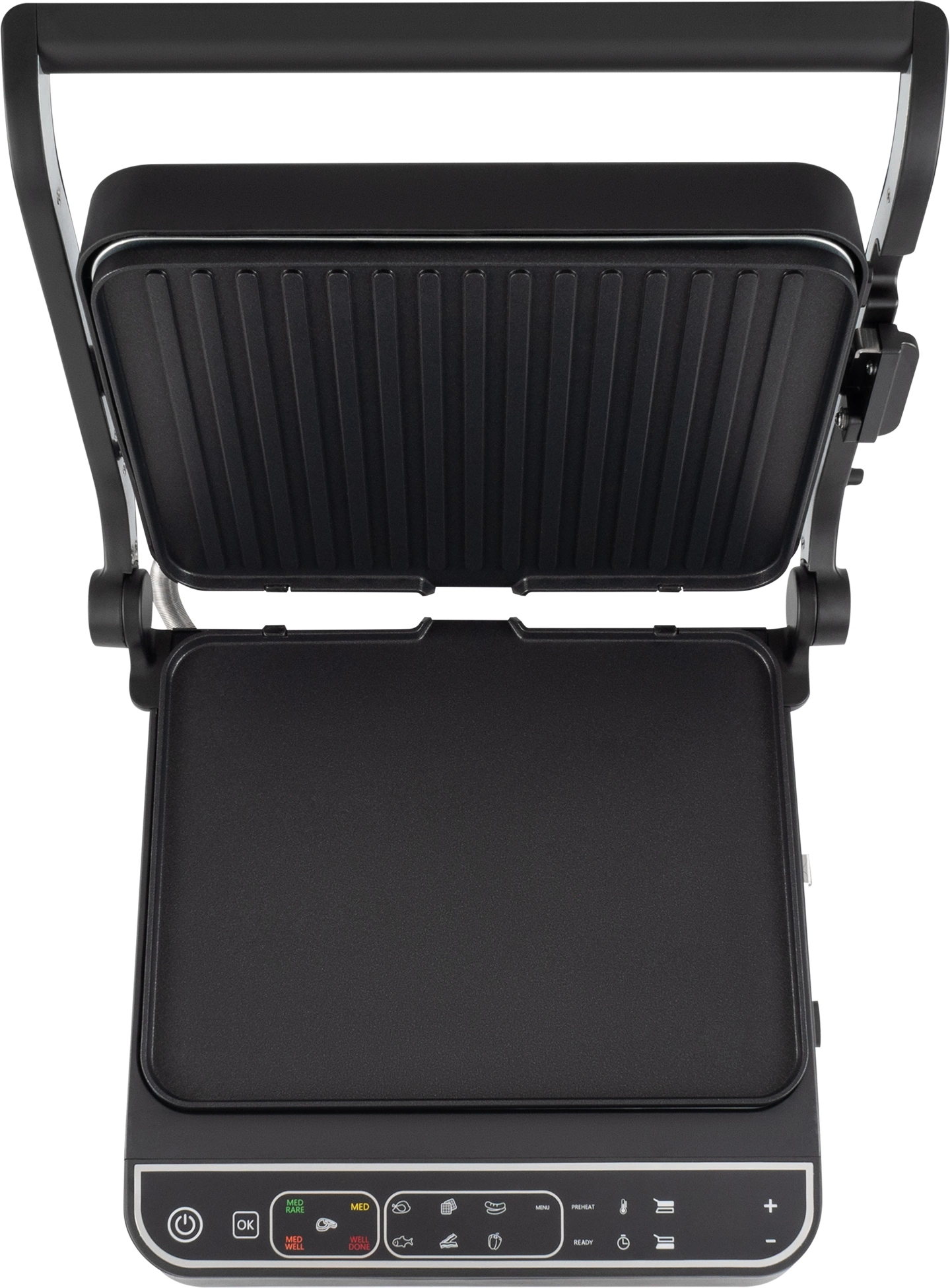 | Особенности 2 | 10 автоматических программ для приготовления, а так же ручной режим, для оптимальных настроек для каждого типа продуктов. Открытие на 180°, плоская панель и раздельная регулировка температуры панелей, позволяет использовать гриль как плиту. |