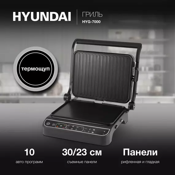 Электрогриль Hyundai HYG-7000 2000Вт серебристый/черный