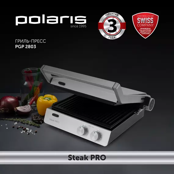 Электрогриль Polaris PGP 2803 2000Вт серебристый