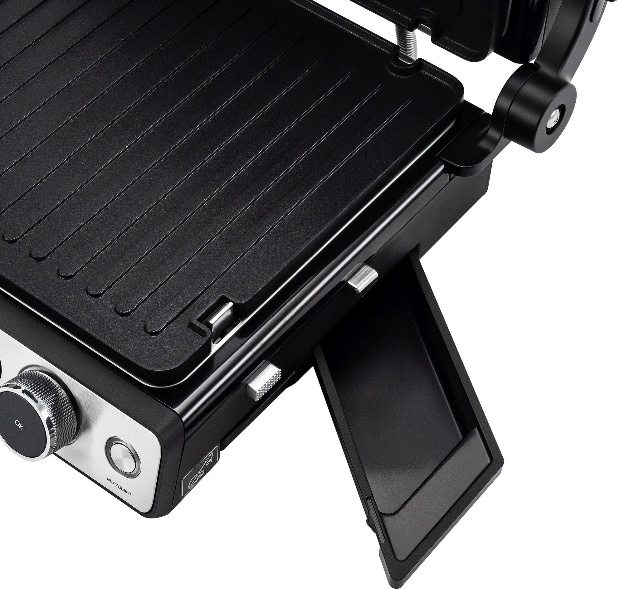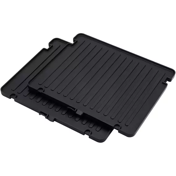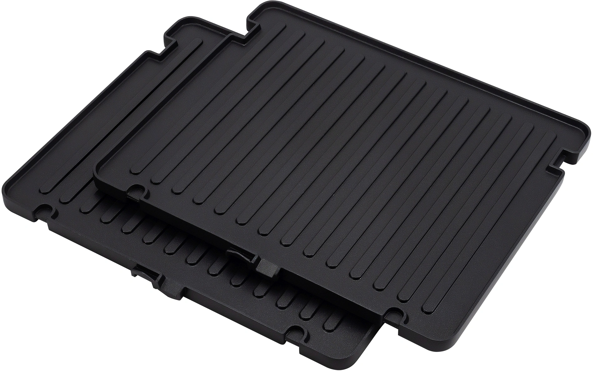 Съемные панели с антипригарным покрытием позволяют готовить с не большим количеством масла или вообще без него, а так же их просто мыть после приготовления. Двусторонние панели - с одной стороны гриль, с другой стороны плоская панель, дают возможность использовать гриль как плиту. Съемные панели