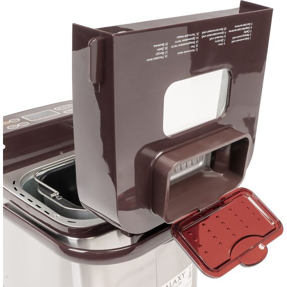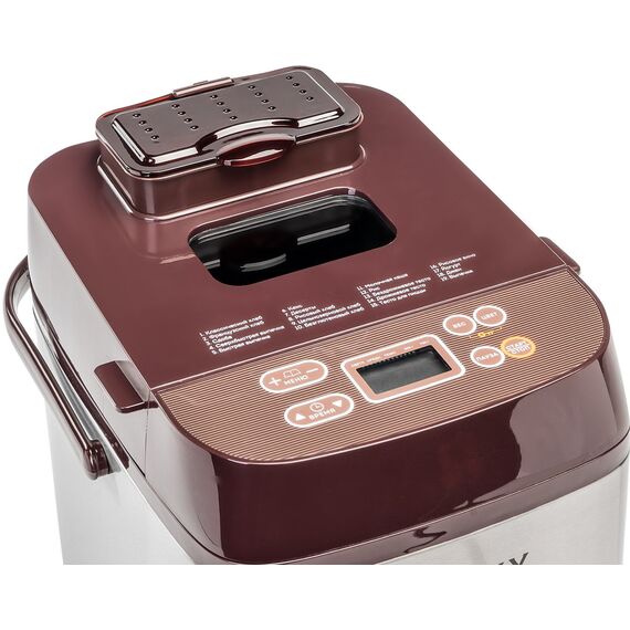 | Особенности хлебопечи | антипригарное покрытие формы, диспенсер, дисплей, нескользящие ножки, окно контроля процесса |