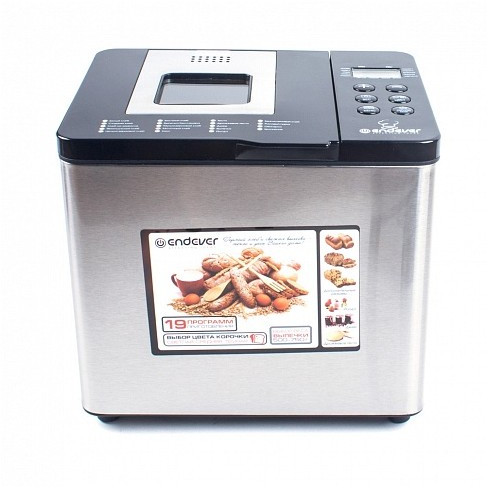 Хлебопечь Endever Skyline MB-54 вес выпечки до 750 г, регулировка веса выпечки, мощность 750 Вт, программ выпечки: 19, цвет черный/стальной