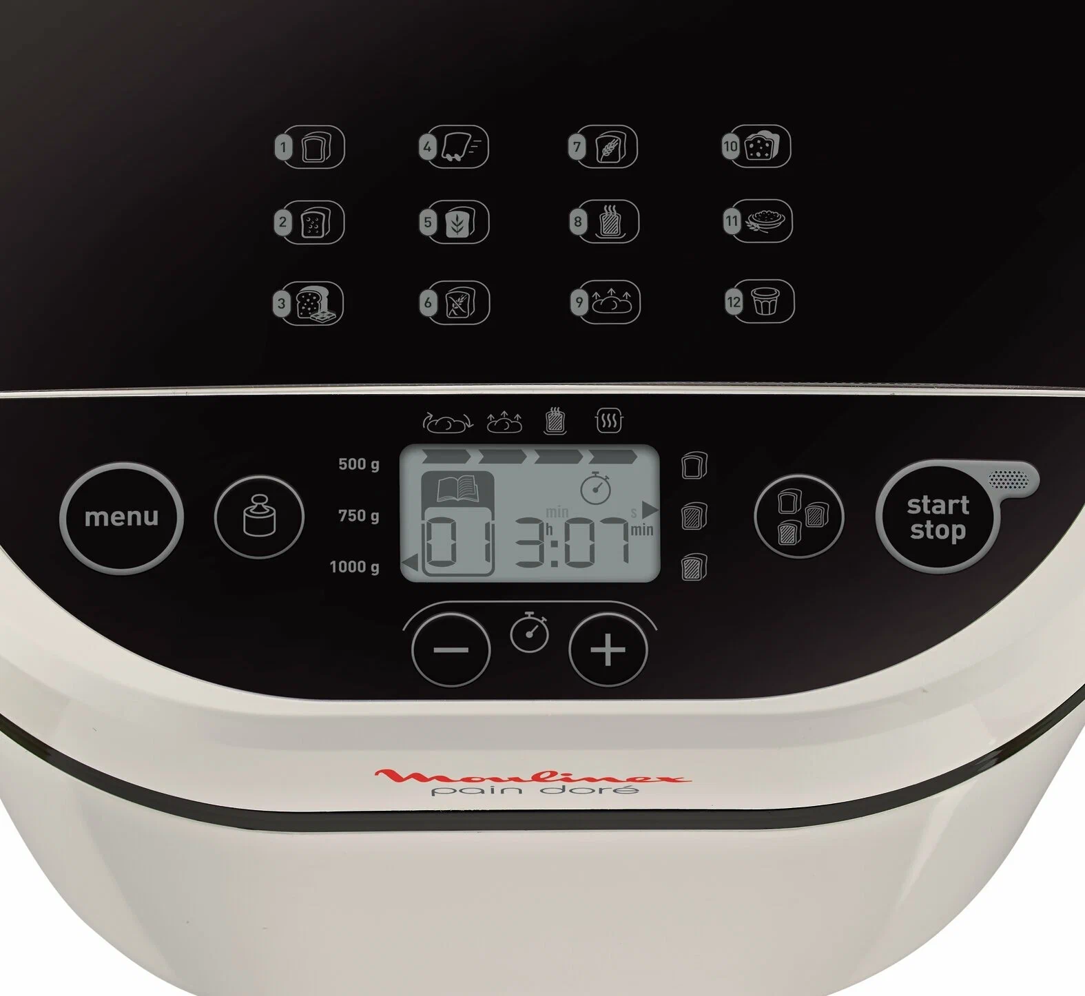 Хлебопечь Moulinex OW210 вес выпечки до 1000 г, регулировка веса выпечки, мощность 650 Вт, программ выпечки: 12, цвет белый