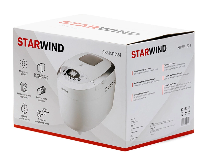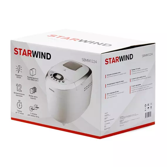 Хлебопечь STARWIND SBMM1224 850Вт белый