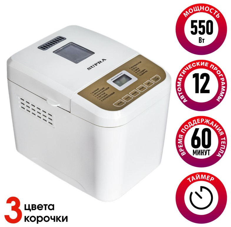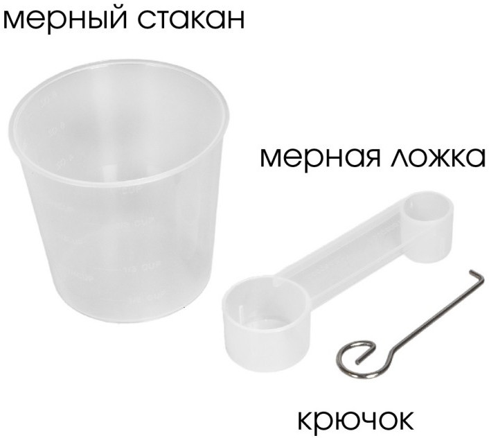 - Хлебопечь, крючок, мерный стакан, ложка, гарантийный талон, инструкция на русском языке