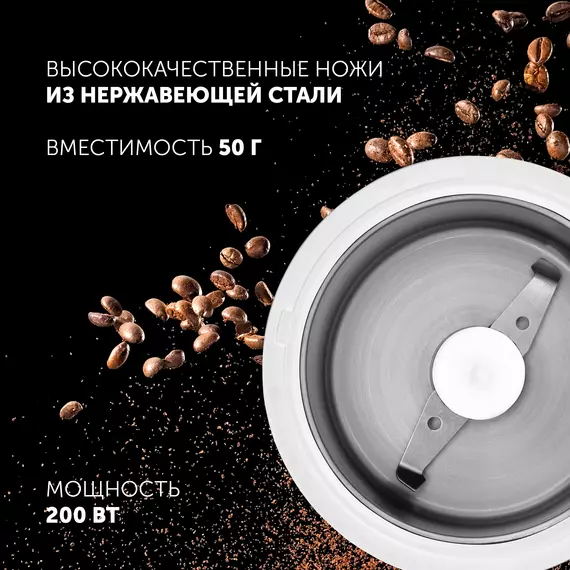 Кофемолка Polaris PCG 2014 200Вт сист.помол.: ротац.нож вместим.: 50гр белый