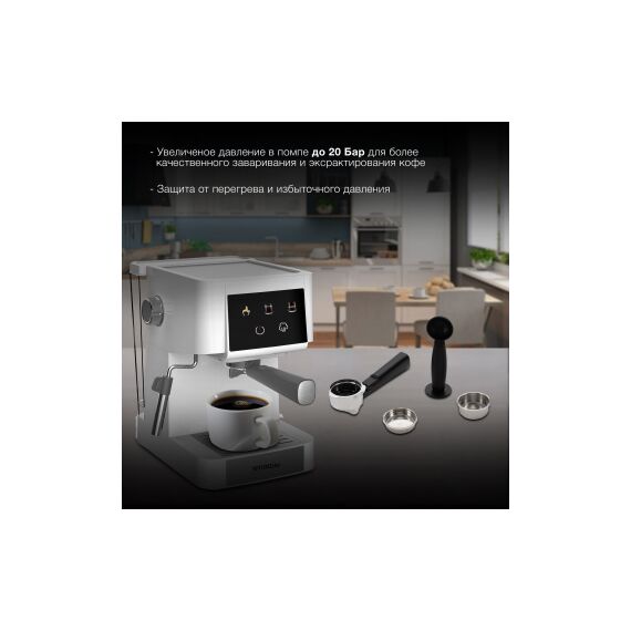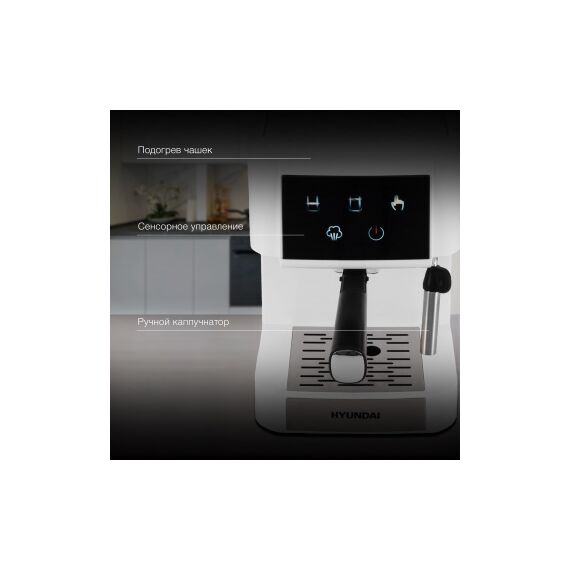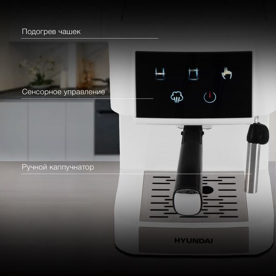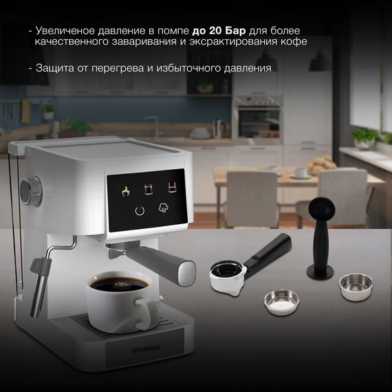 Кофеварка рожковая Hyundai HEM-3203 1000Вт белый/серебристый