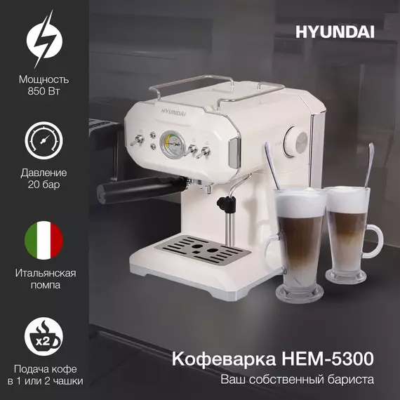 Кофеварка рожковая Hyundai HEM-5300 850Вт бежевый/серебристый