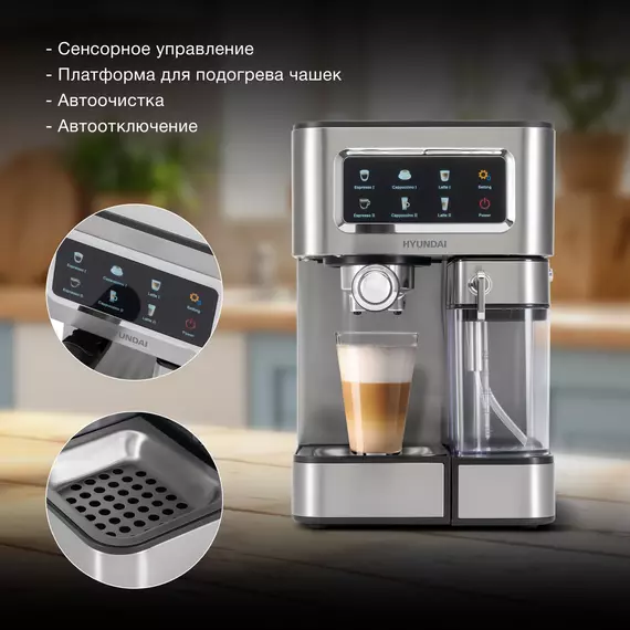 Кофеварка рожковая Hyundai HEM-5306 1350Вт серебристый/черный