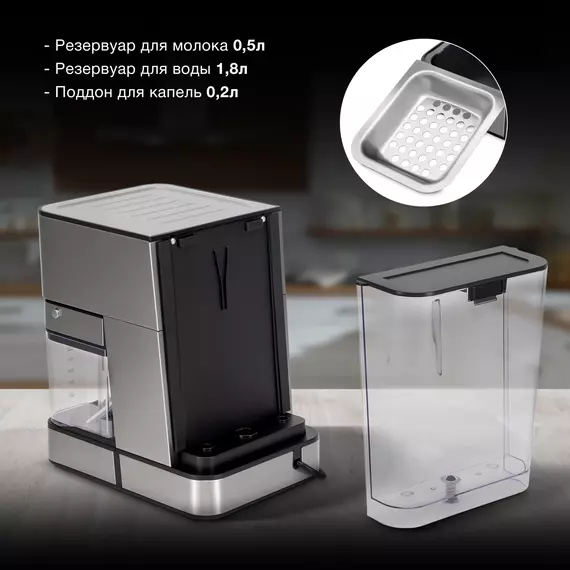 Кофеварка рожкового типа с возможностью автоматического приготовления молочных напитков.