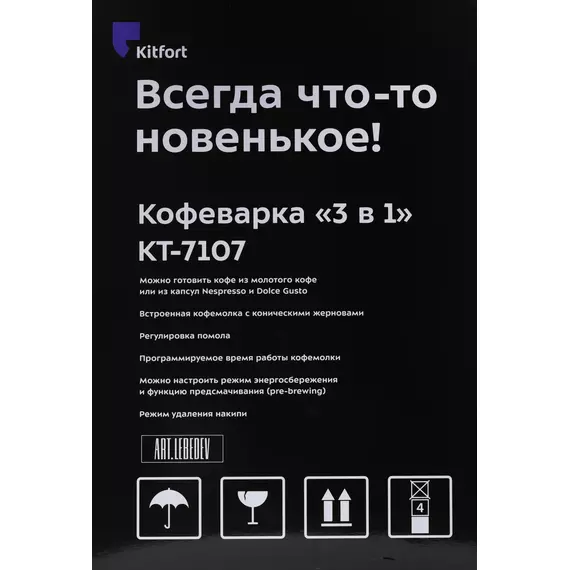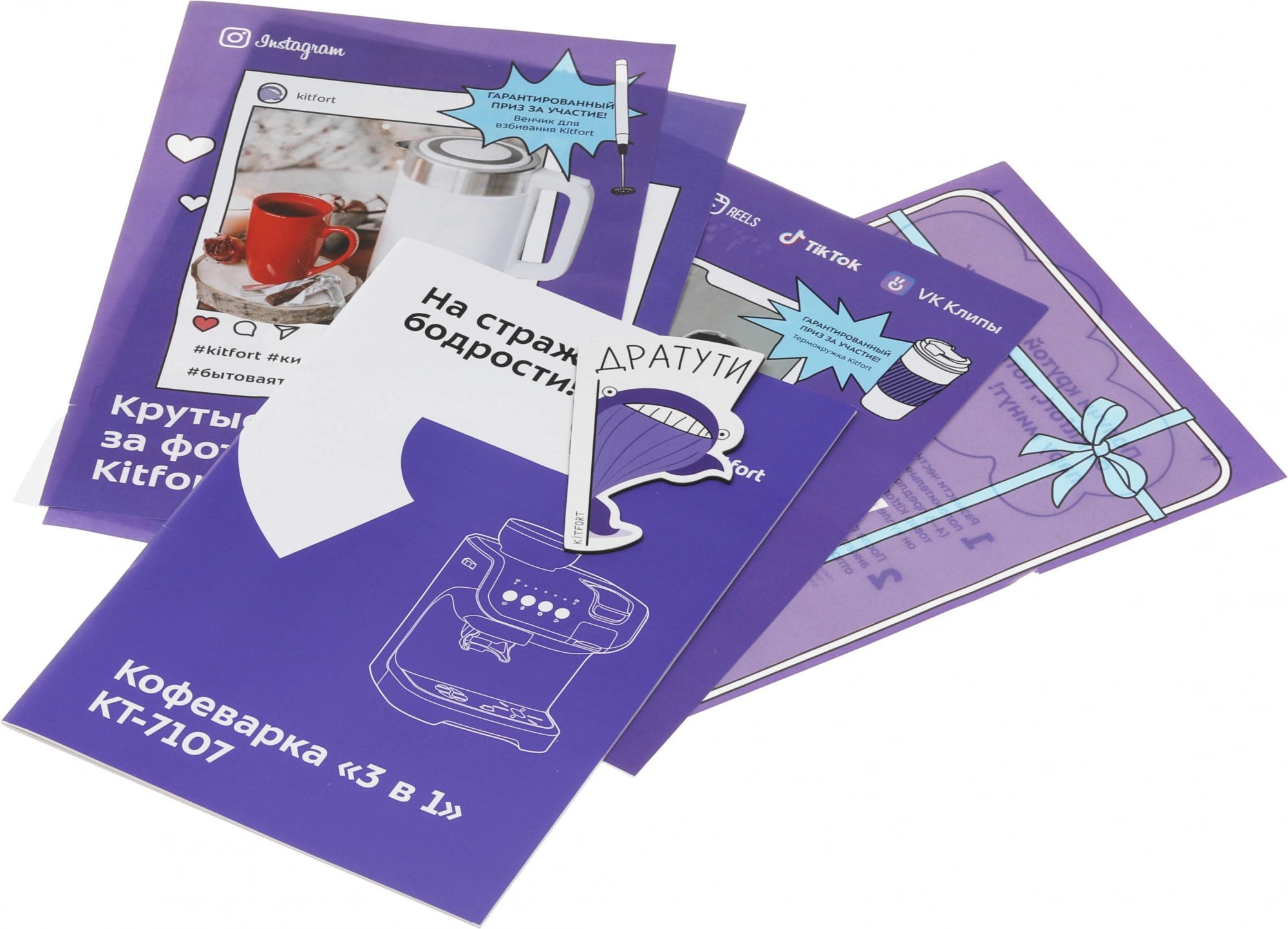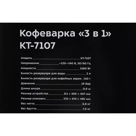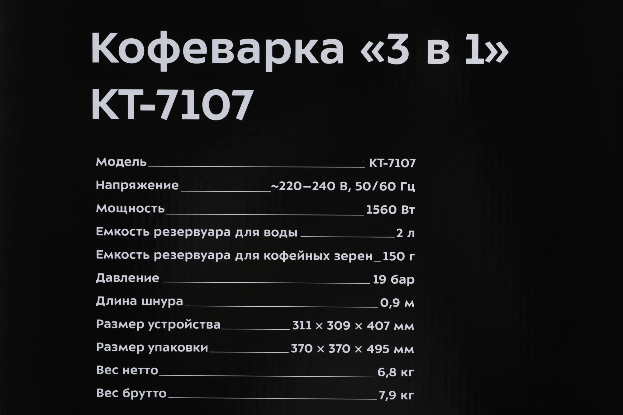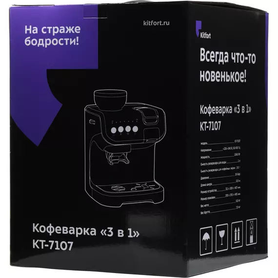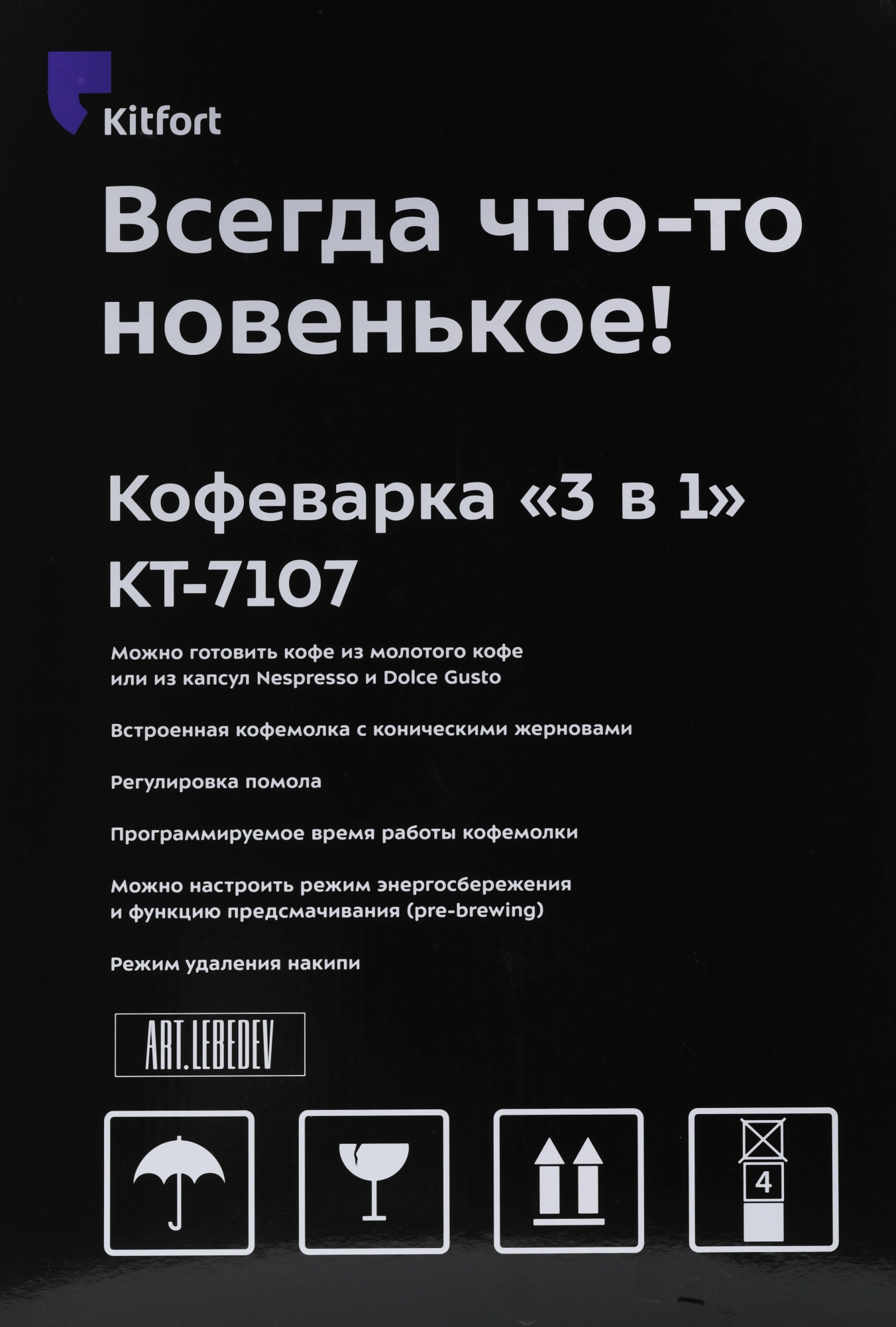Кофеварка Kitfort КТ-7107 рожковая 1560Вт черный/серебристый