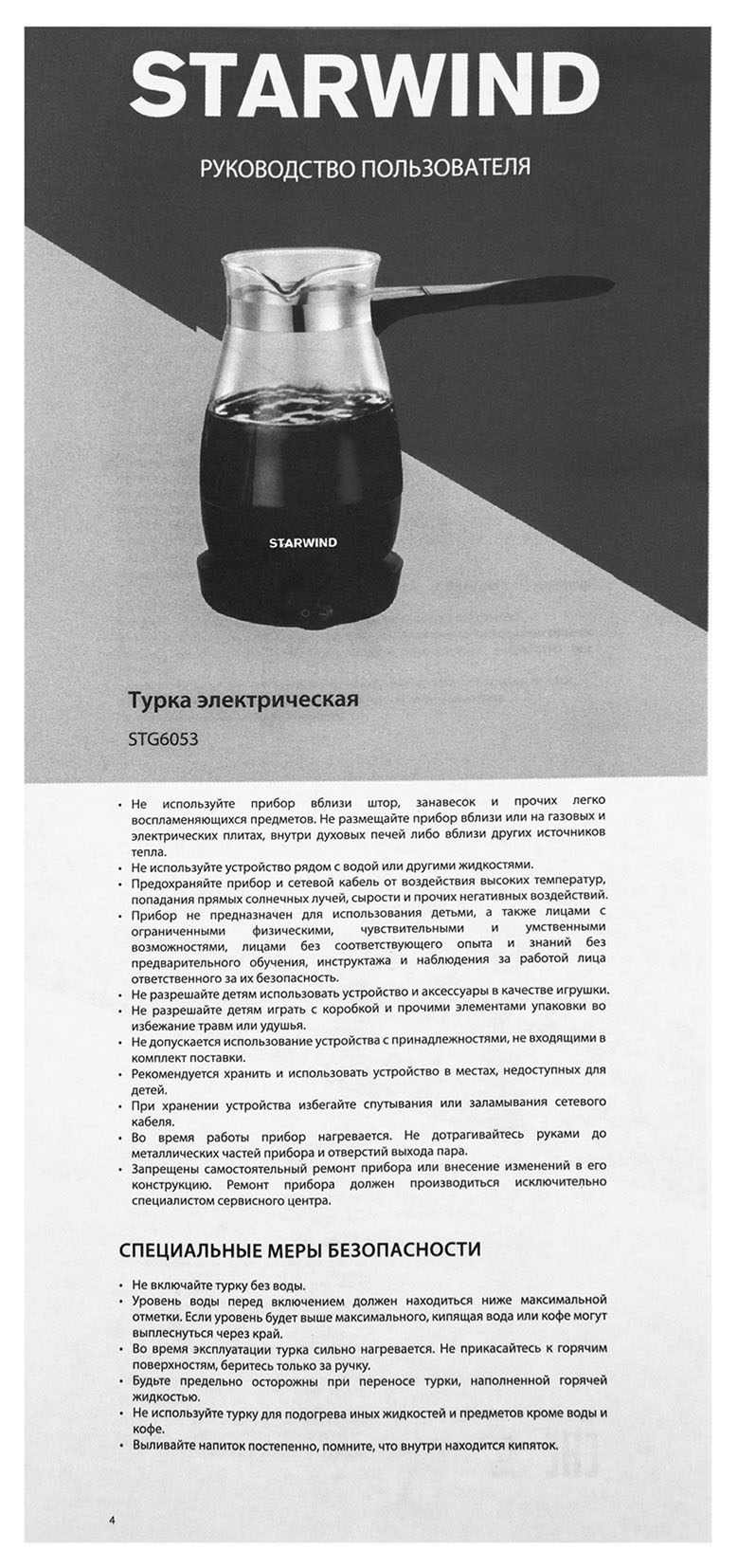 Кофеварка STARWIND STG6053 Электрическая турка 600Вт черный
