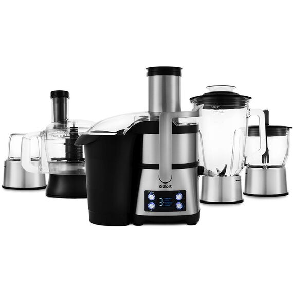 | Особенности | Кухонный процессор КТ-1395 сочетает в себе функции 11 устройств: тёрка, шинковка, соломорезка, блендер и кофемолка, центробежная соковыжималка и соковыжималка для цитрусовых, измельчитель для мяса, насадка для жидкого теста, насадка в виде ножа и мутовка. |