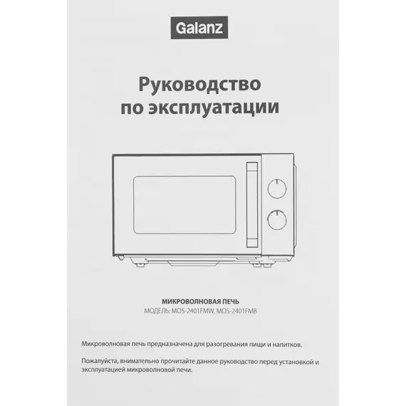 Микроволновая печь Galanz MOS-2401FMW 20л. 800Вт белый [132401]