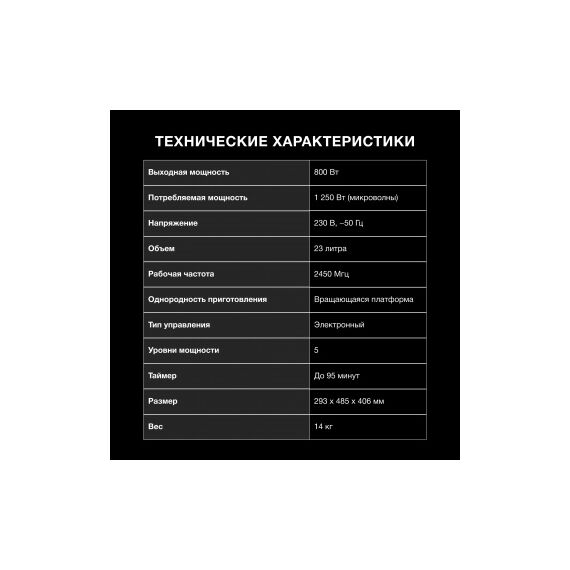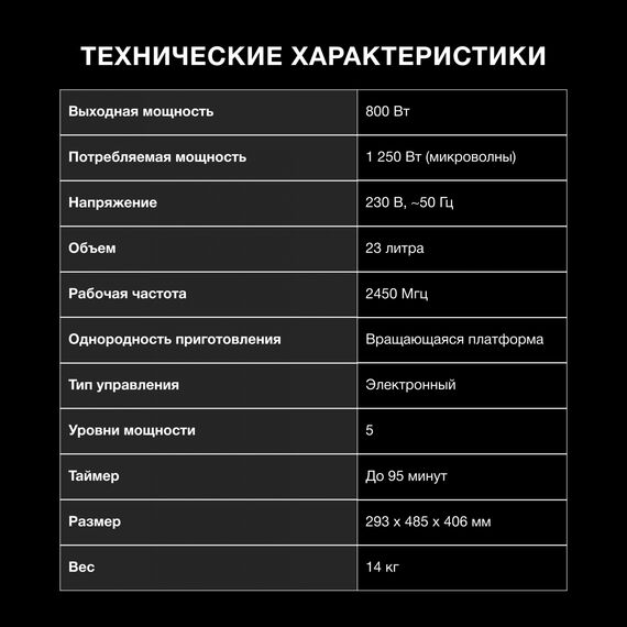 | Мощность микроволн | 800 Вт |