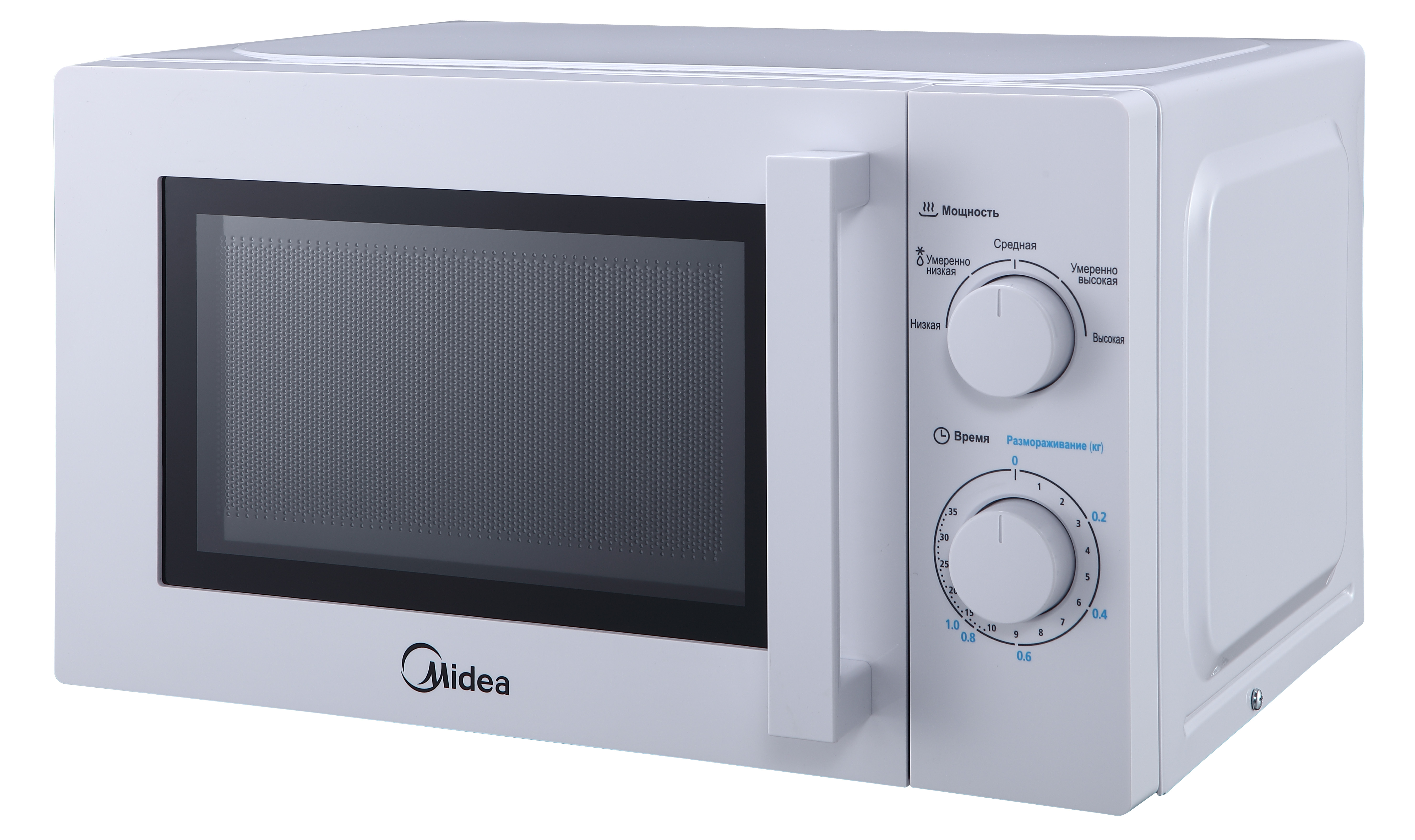 Отдельностоящая микроволновая печь Midea MM720CY6-W 20 л, механическое управление, таймер, 5 уровней мощности, подсветка, размораживание, поворотный стол, цвет белый