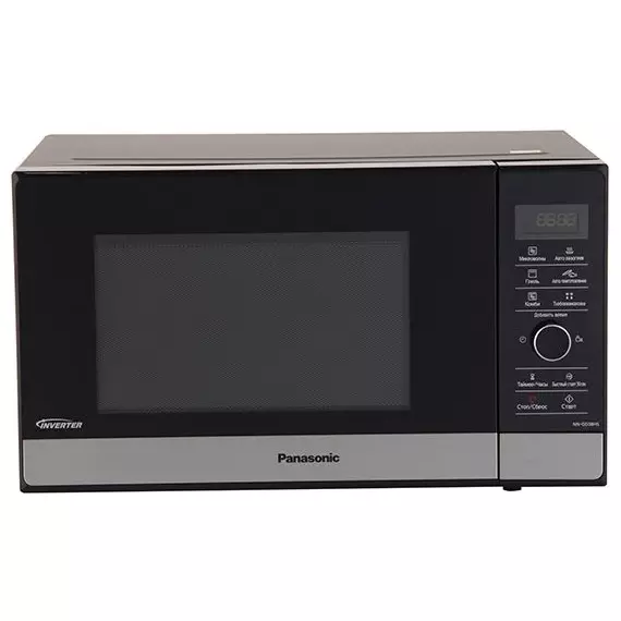В микроволновой печи Panasonic NN-GD38HSZPE можно готовить и разогревать пищу, а также размораживать полуфабрикаты. Важная особенность этой модели – инверторное управление, позволяющее задействовать комбинацию СВЧ и гриля. Хорошо подходит для выпечки и жарения с образованием хрустящей корочки.