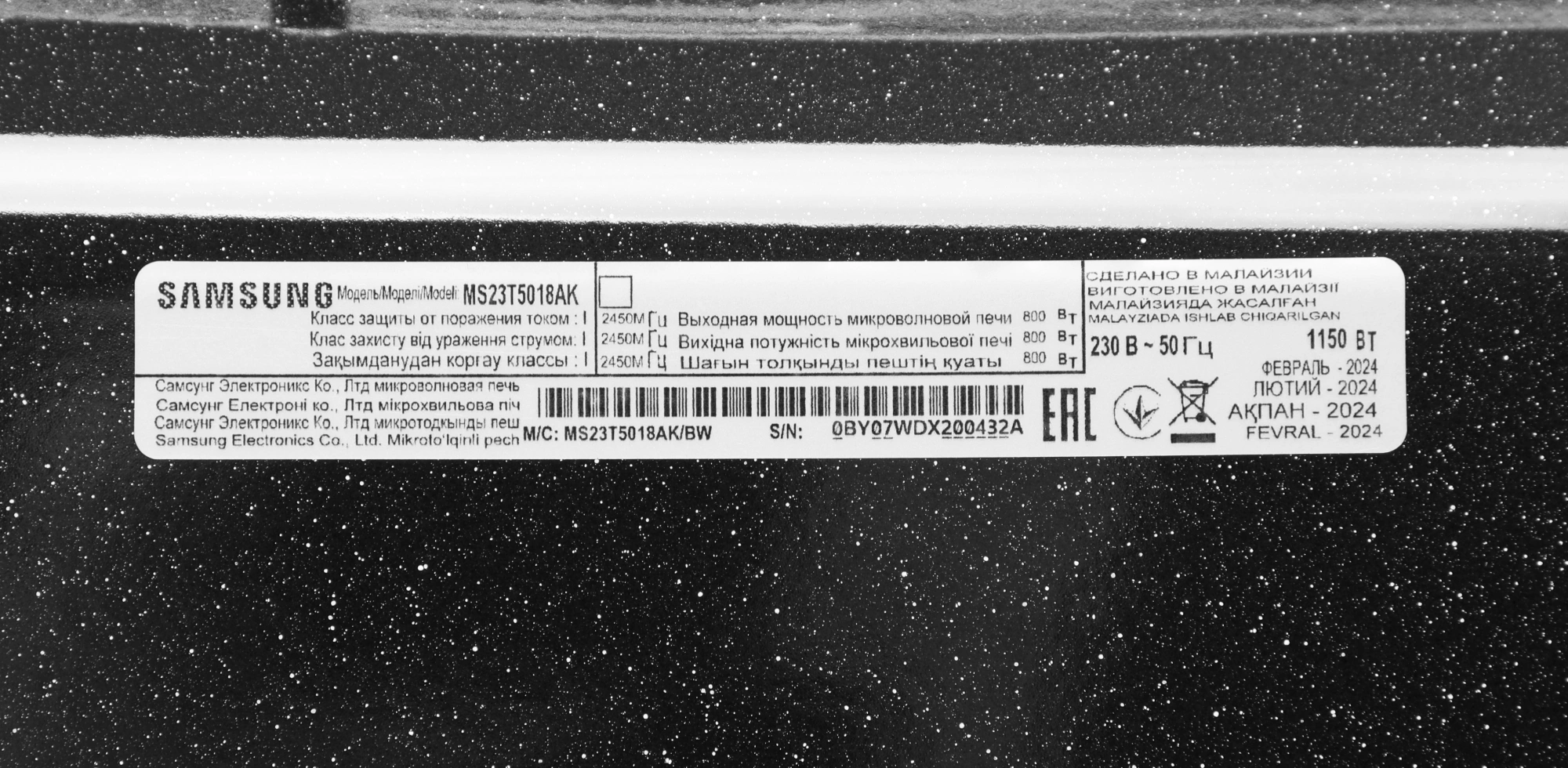 Микроволновая печь Samsung MS23T5018AK/BW 23л. 800Вт черный