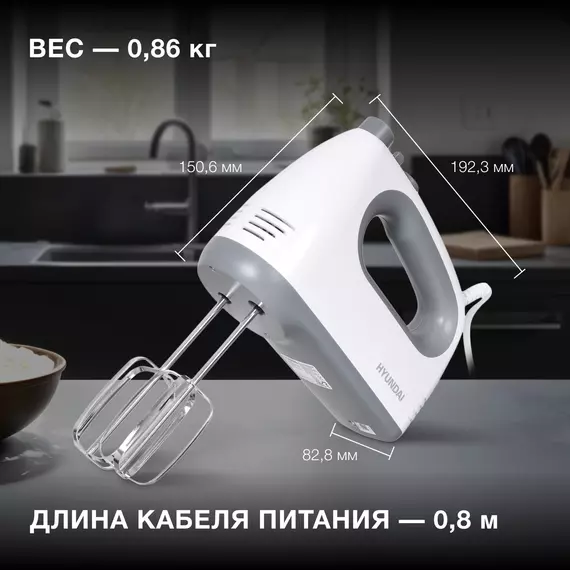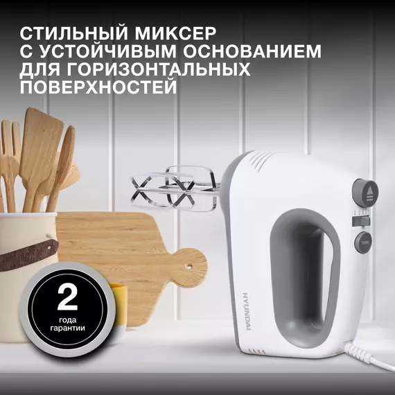 Миксер ручной Hyundai HYM-H4501 500Вт белый/серый