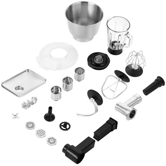 | Другие комплектующие | Чаша блендера с крышкой, насадки для мясорубки, насадки для овощерезки |