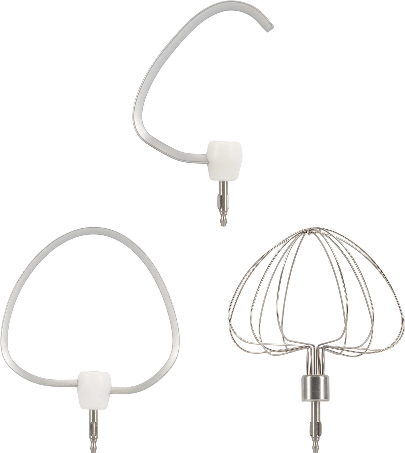 | Комплектация | Миксер; чаша; насадка-крюк; насадка-венчик; насадка-лопатка; инструкция с гарантийным талоном; книга рецептов; мультифункциональный защитный обод |