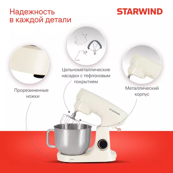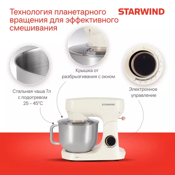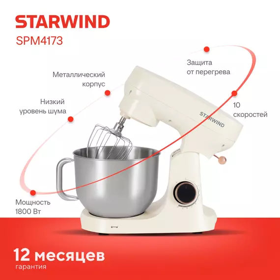 Миксер STARWIND SPM4173 планетарный 1800Вт кремовый