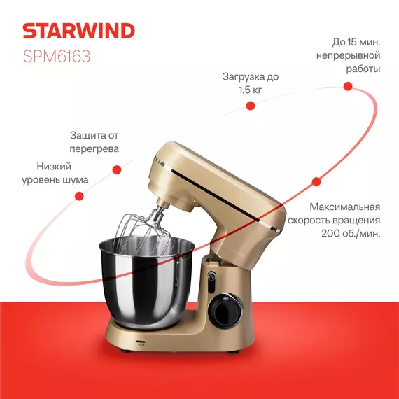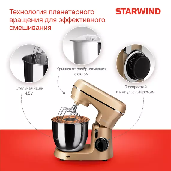 Миксер планетарный STARWIND SPM6163 1300Вт золотистый