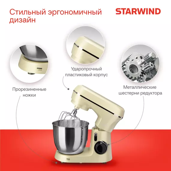 Миксер планетарный STARWIND SPM6164 1300Вт бежевый