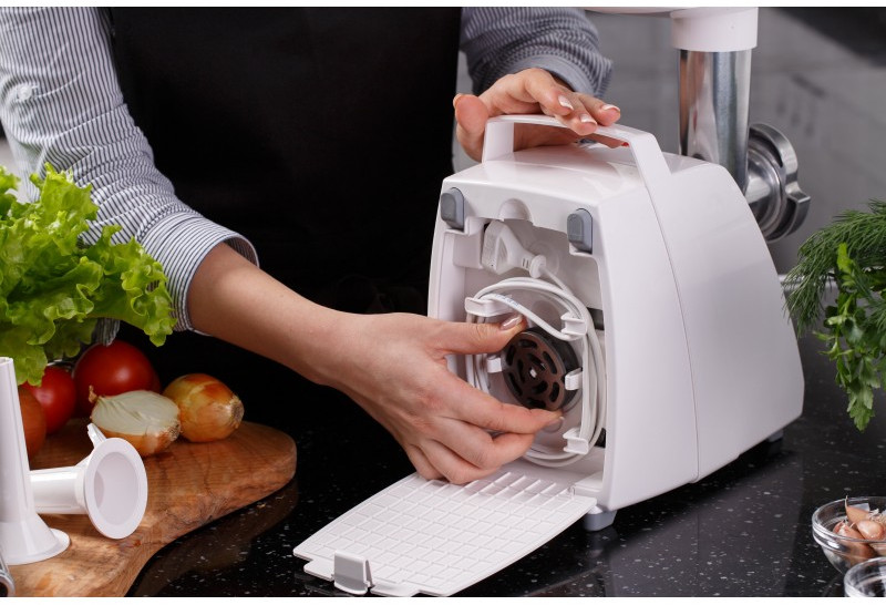 - Три решетки с отверстиями различного размера позволяют получить фарш различной консистенции