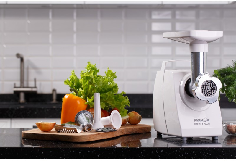 - Электрическая мясорубка М33 «Аксион» обеспечит получение до 1,7 кг фарша в минуту. Три решетки с отверстиями разного диаметра позволят получить фарш нужной консистенции для приготовления самых разных блюд