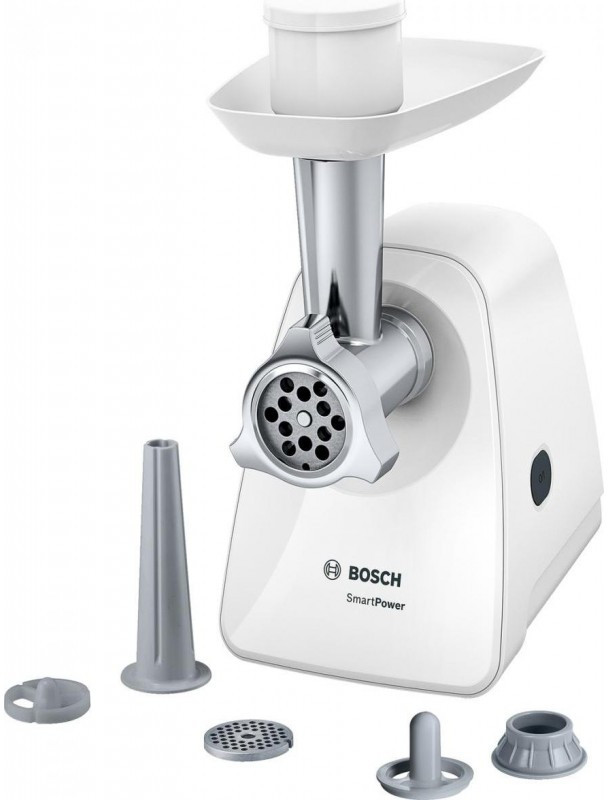 Мясорубка BOSCH MFW2520W SmartPower, 350/1500 Вт, 2 форм диска, насадка для колбасок и кеббе