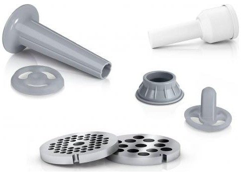 - Насадки насадки-терки; для шинкования; для приготовления колбас; для кеббе