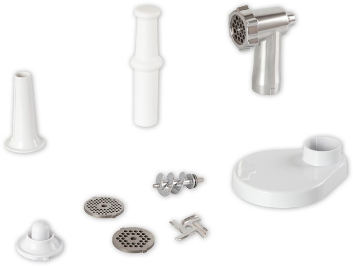 - Мясорубка оснащена большим приемным раструбом. Высококачественные металлические детали не позволяют продуктам окисляться в процессе переработки, а также гарантируют надежность и долговечность устройства.