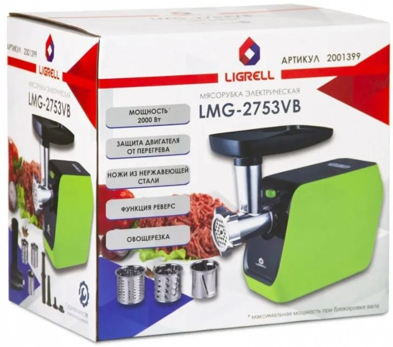 Мясорубка LIGRELL LMG-2753VB 2000 Вт, реверс, овощерезка