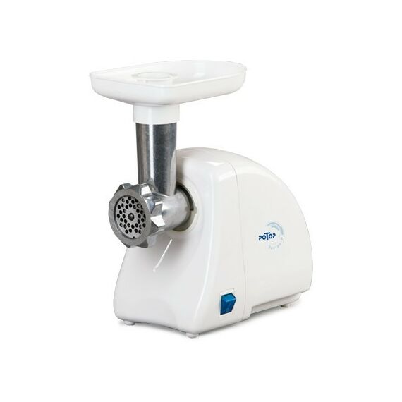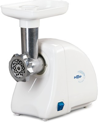 - Корпус мясорубки и приемного лотка для продуктов изготовлены из прочного пластика белого цвета, на нижней части корпуса расположены прорезиненные ножки для дополнительной устойчивости